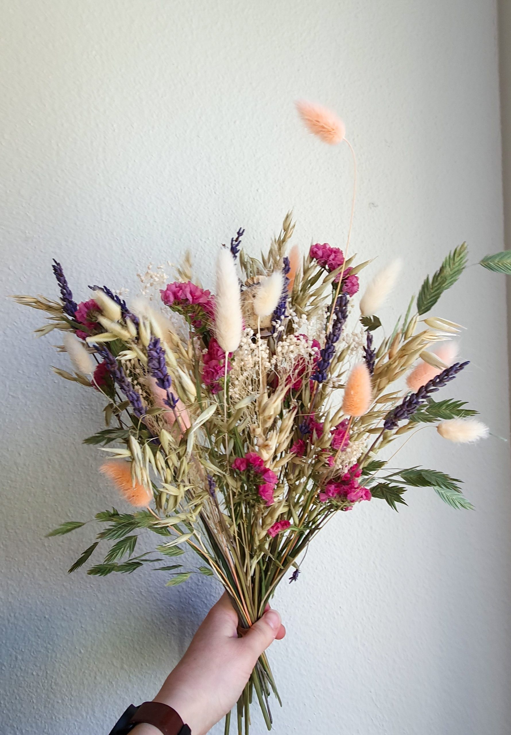 Choisissez la gamme de couleur et le format de bouquet de votre choix pour une composition unique en fleurs séchées.
